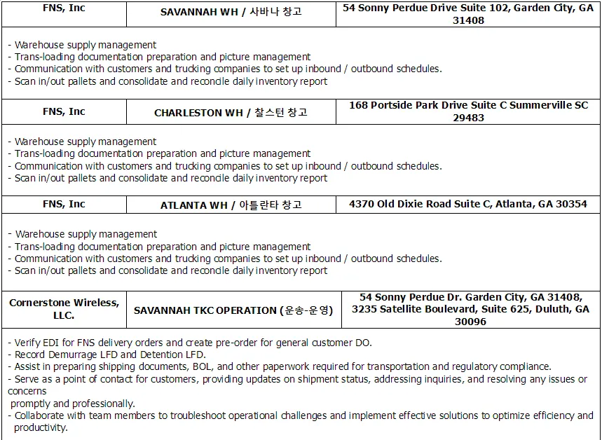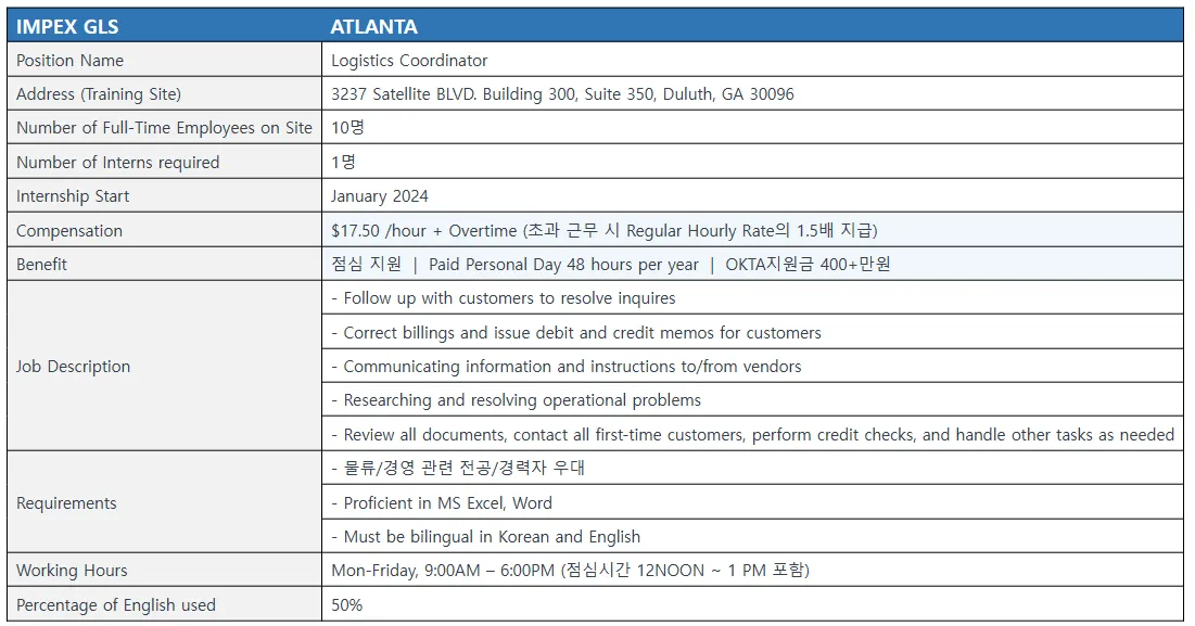 C&L Global, Inc. 물류 오퍼레이션 인턴 채용